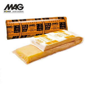 ・マグオランジュはグラスウール全面をポリエチレンフィルムで包み、 施工時のチクチク感を解消しました(全面パック品)。